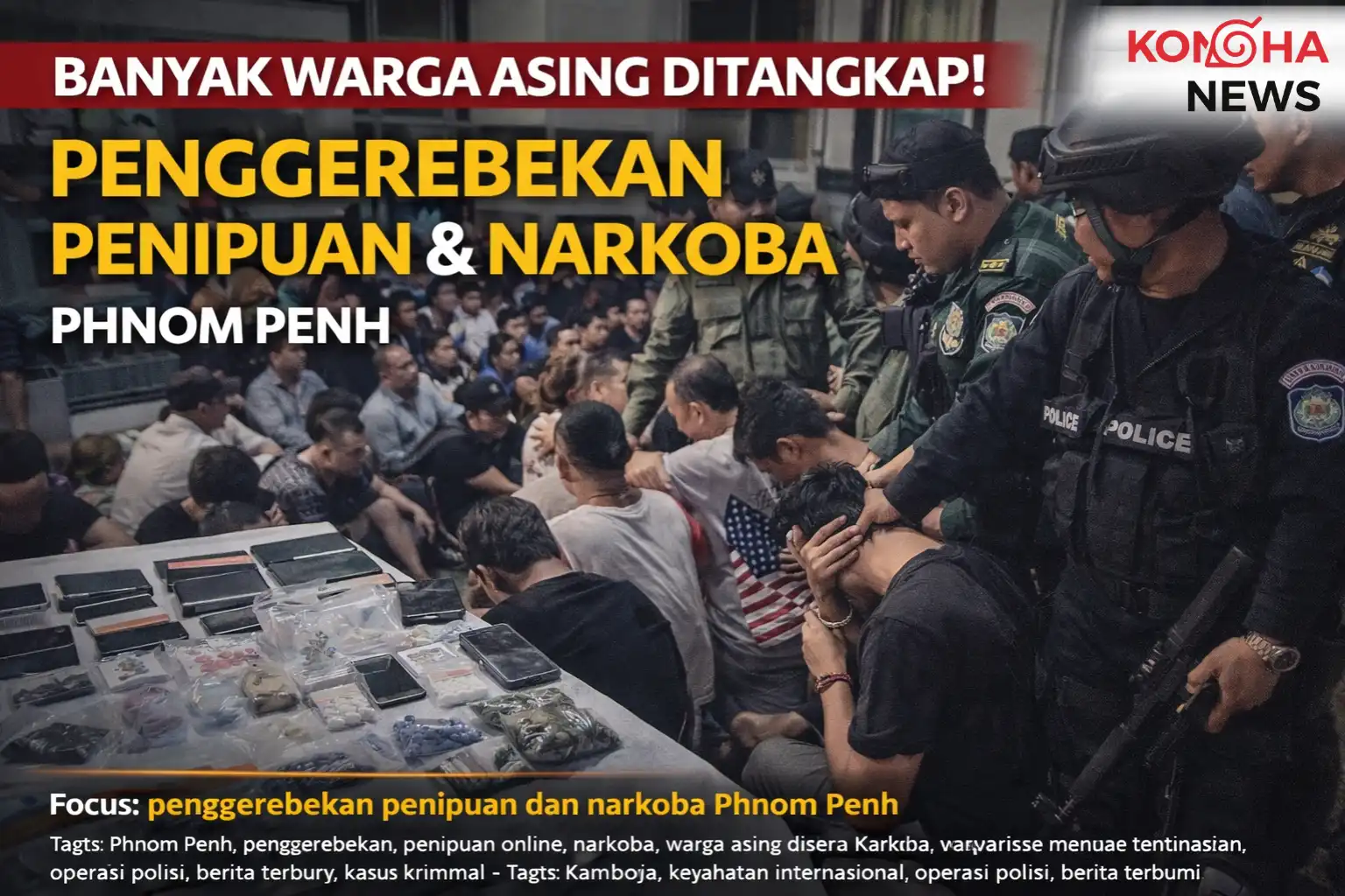 news Tags:berita Kamboja, berita terbaru, kasus kriminal, kejahatan internasional, narkoba, operasi polisi, penggerebekan, penipuan online, Phnom Penh, warga asing ditangkap